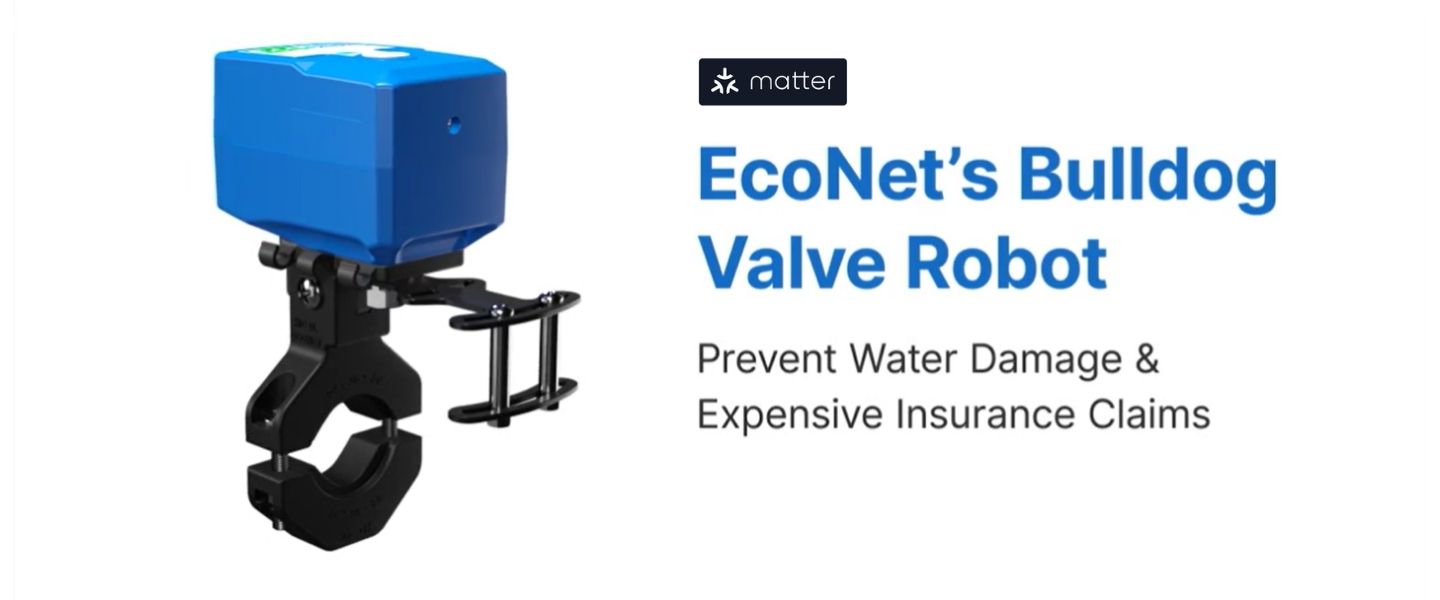 Explore Bulldog Matter Certified Solutions from EcoNet Controls. These easy-to-install smart-home devices offer reliable performance, seamless Matter compatibility and simple connectivity with your preferred platform. Choose from WiFi starter kits, valve controllers and sensors that help prevent water damage, reduce risk and may even lower home insurance costs. Enjoy future-proof performance and free shipping across the U.S. and Canada.