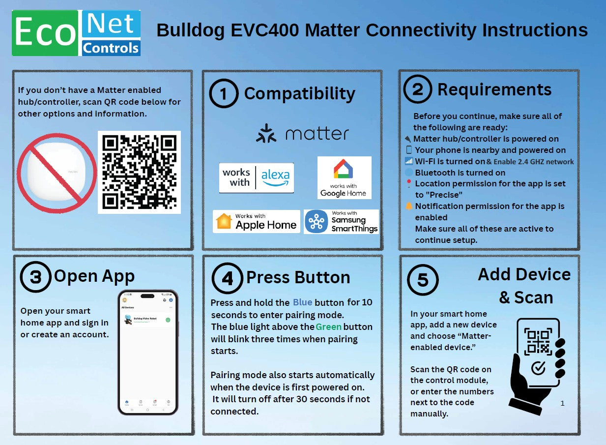This guide will walk you through connecting the EVC400-MW and EVC400-MW-SK3 controller module to the Matter app/Smart Home Apps. Please follow the guide step by step and take note of the additional information beside videos and images. Our commitment to exceptional customer support sets us apart. If any issue still occurs after following this guide our dedicated team of real humans is always ready to provide personalized support, ensuring that every experience with our products is seamless and easy.